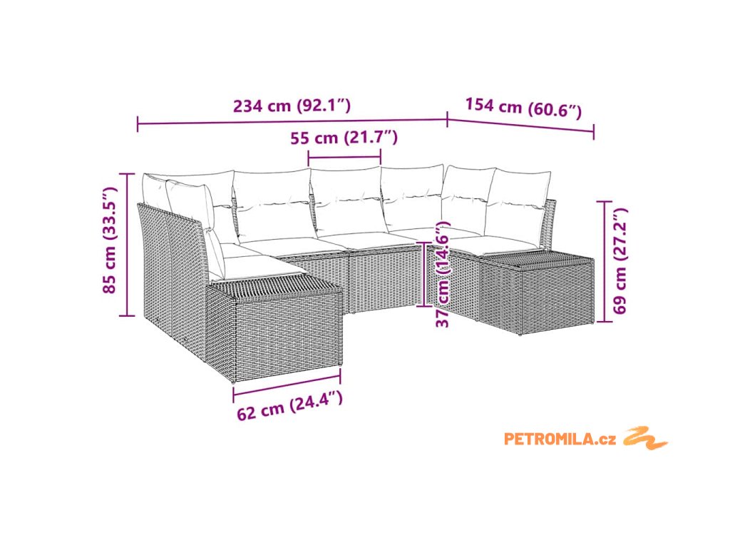 Sada zahradních pohovek s polštářem 7 pcs Hnědá Poly ratan