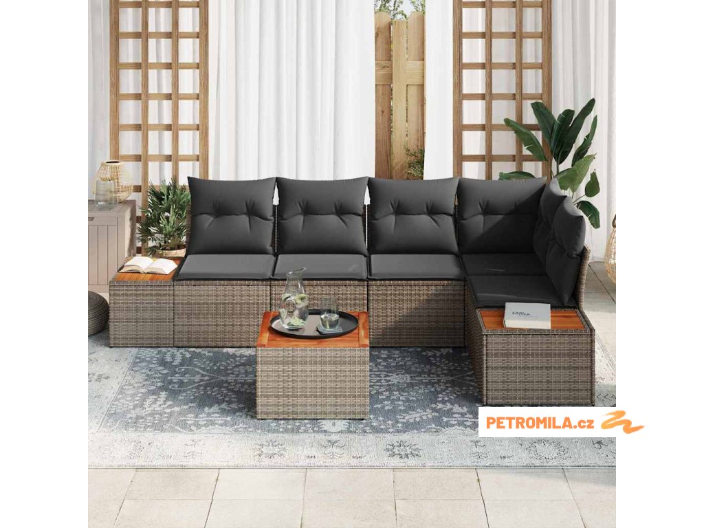 Sada zahradních pohovek s polštářem 6 pcs Šedá polyratan