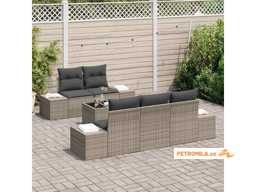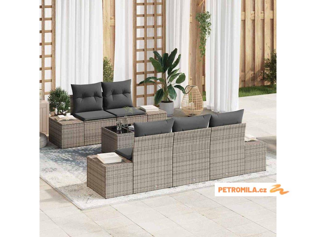 Sada zahradních pohovek s polštářem 6 pcs Šedá polyratan