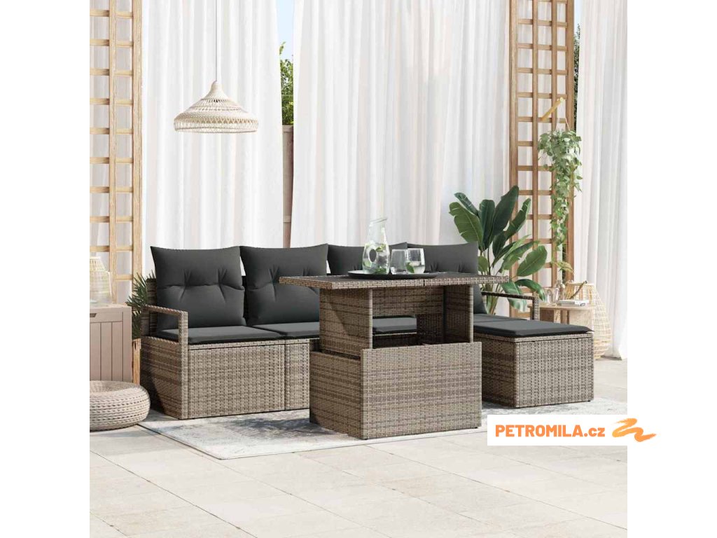 Sada zahradních pohovek s polštářem 6 pcs Šedá