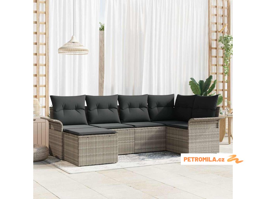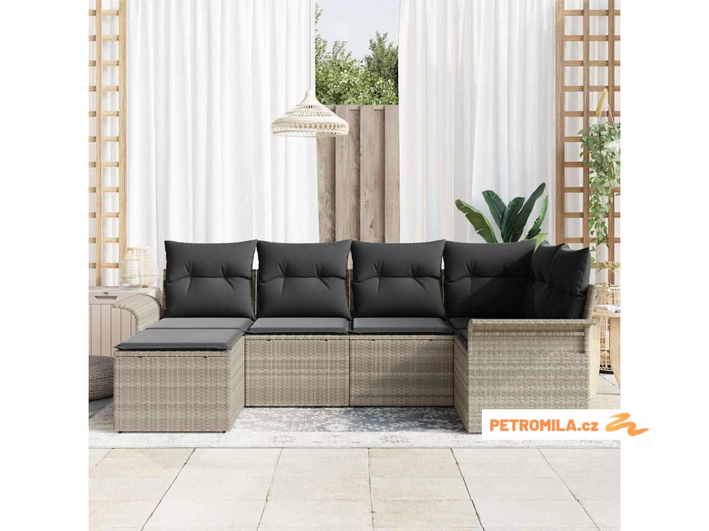 Sada zahradních pohovek s polštářem 6 pcs Světle šedá polyratan