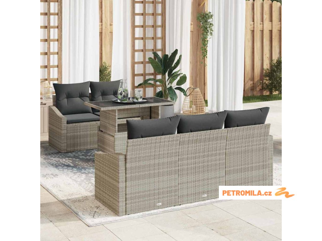 Sada zahradních pohovek s polštářem 6 pcs Světle šedá polyratan