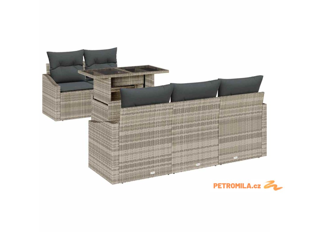 Sada zahradních pohovek s polštářem 6 pcs Světle šedá polyratan