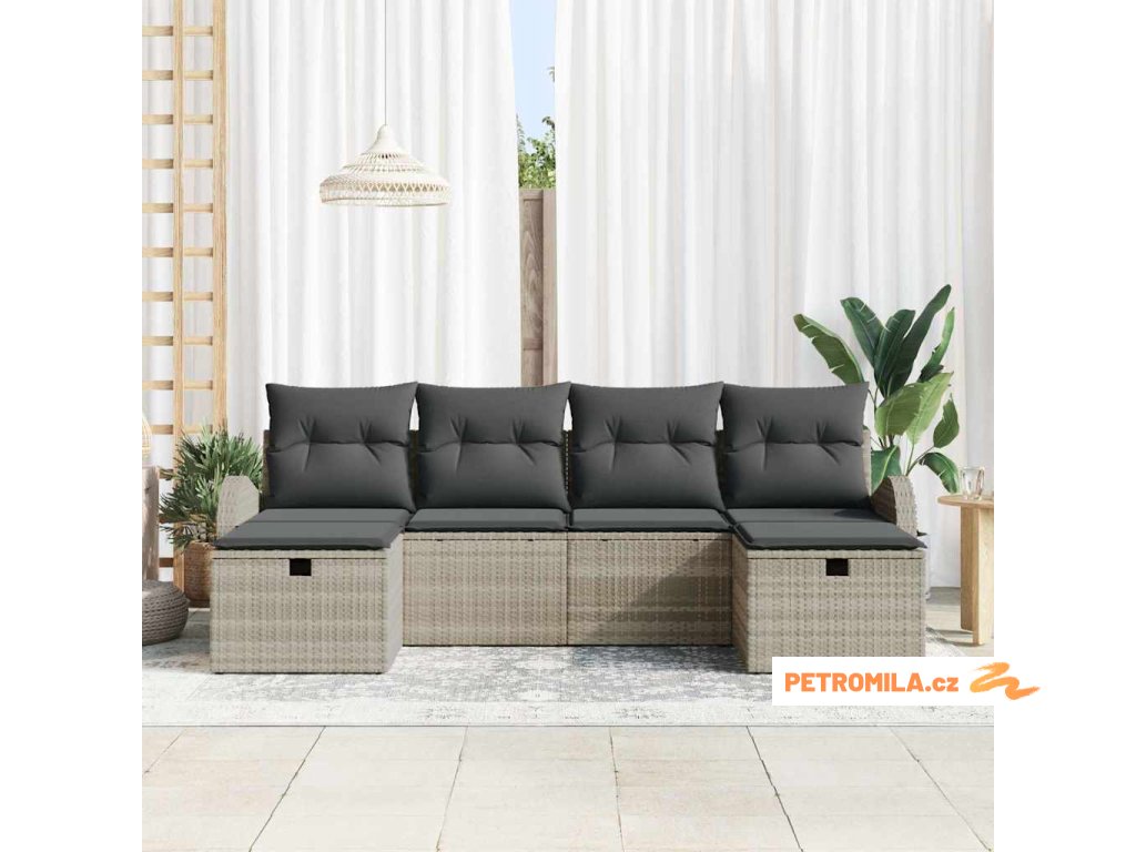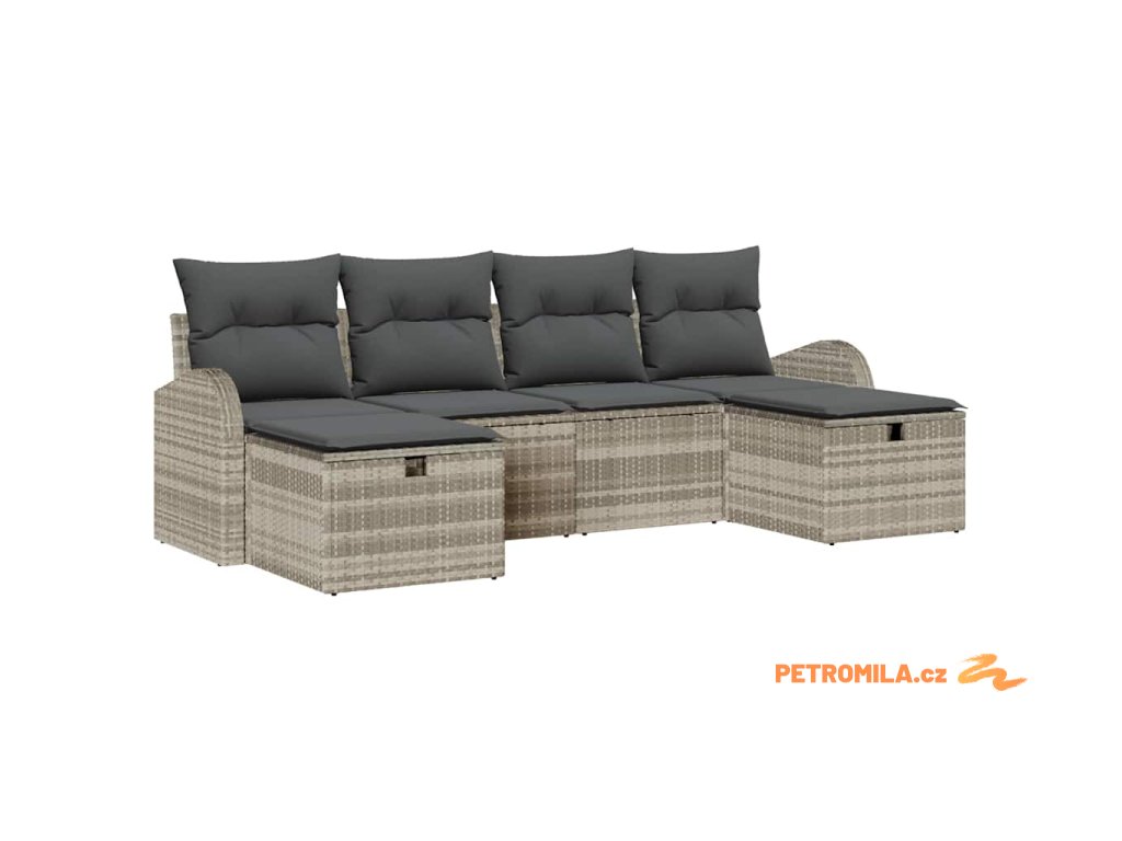 Sada zahradních pohovek s polštářem 6 pcs Světle šedá polyratan