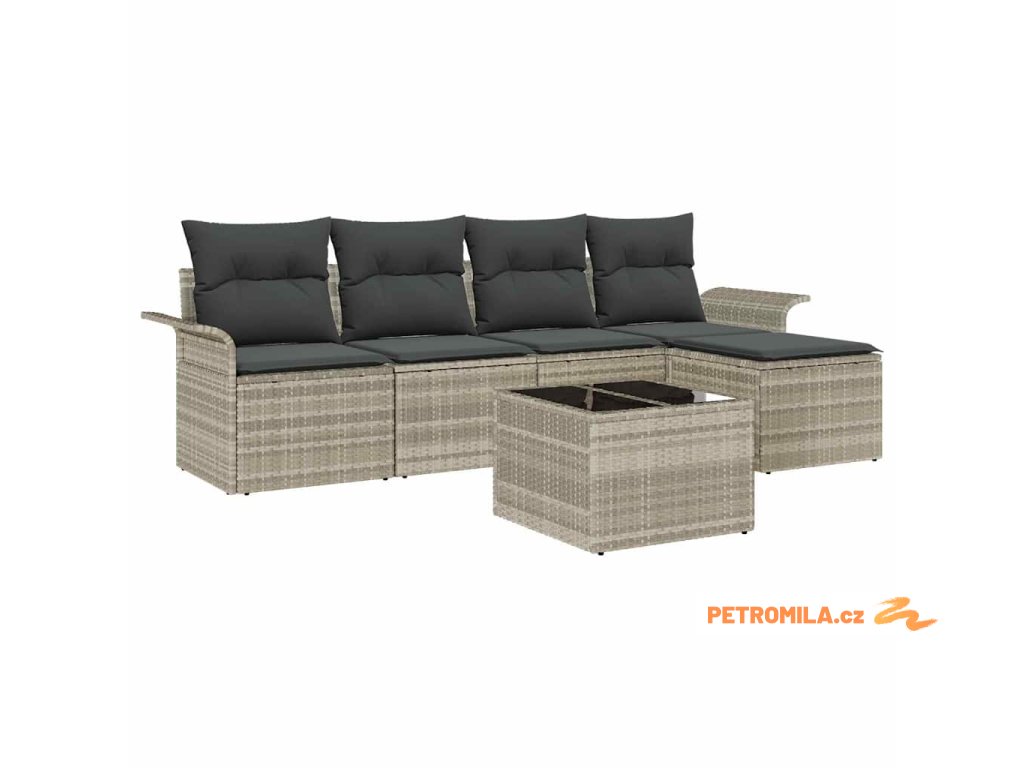Sada zahradních pohovek s polštářem 6 pcs Světle šedá polyratan