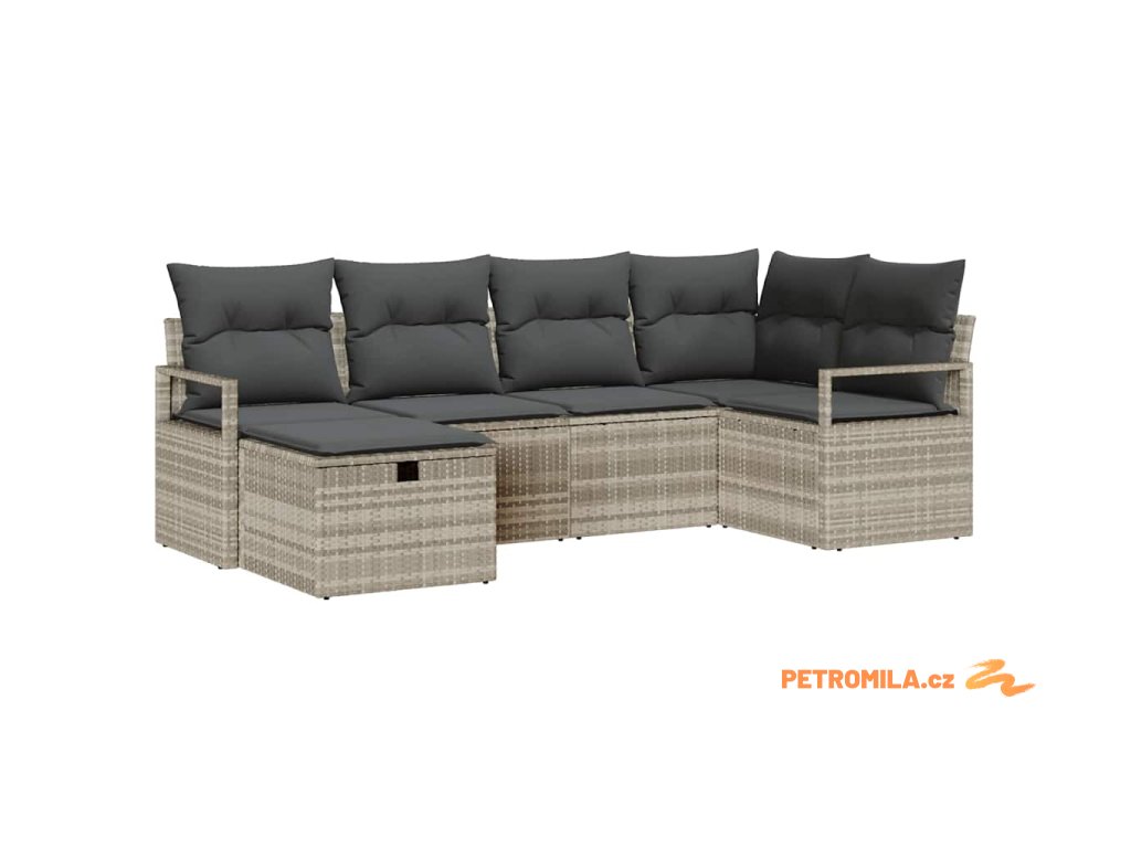 Sada zahradních pohovek s polštářem 6 pcs Světle šedá polyratan