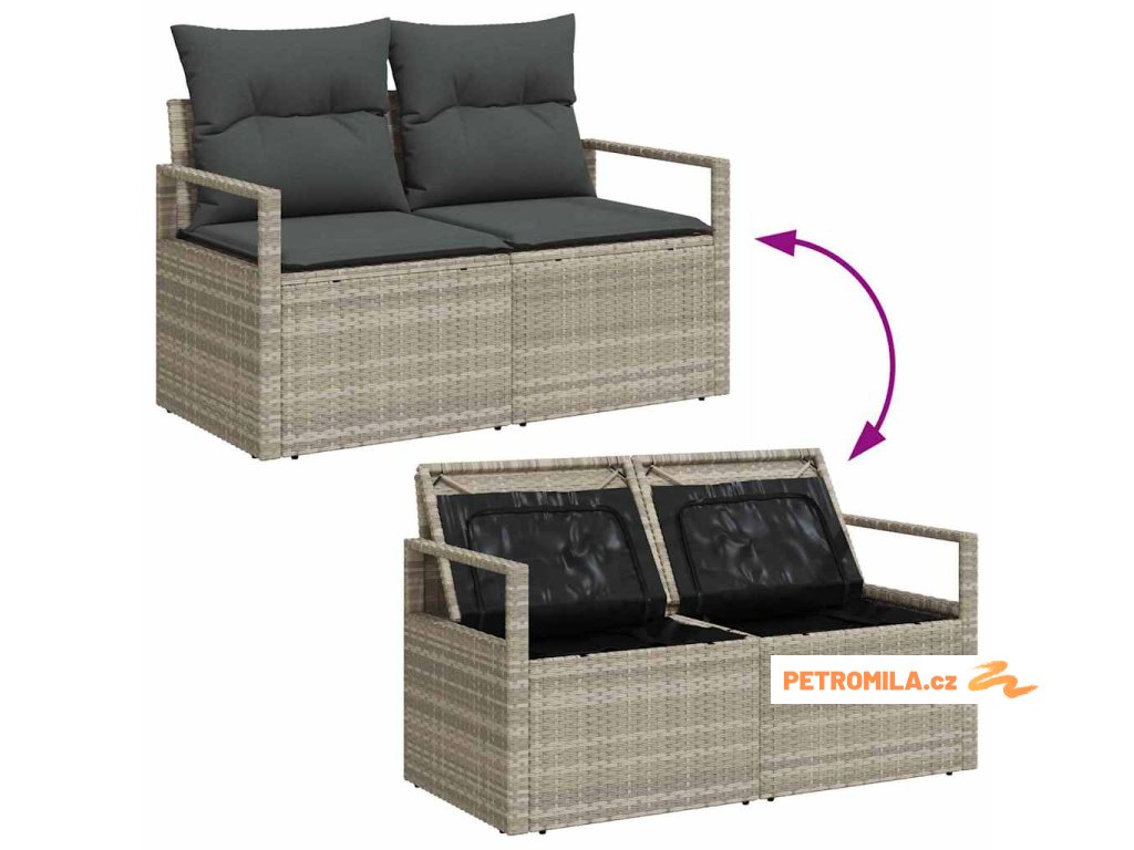 Sada zahradních pohovek s úložištěm 11 pcs Šedá Poly ratan