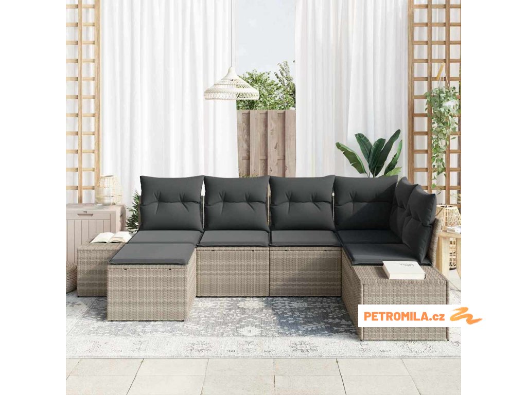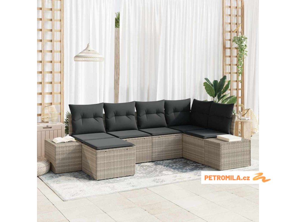 Sada zahradních pohovek s polštářem 6 pcs Světle šedá polyratan