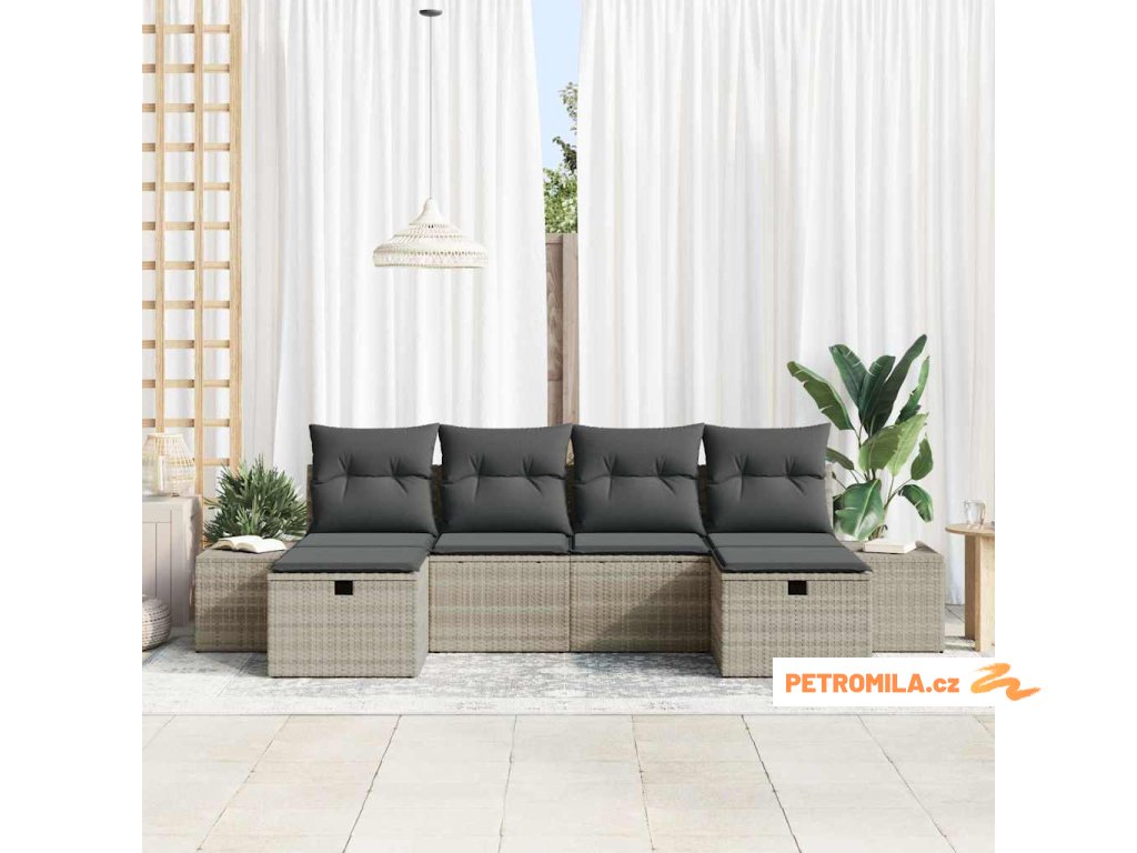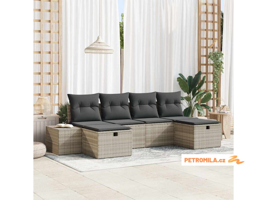 Sada zahradních pohovek s polštářem 6 pcs Světle šedá polyratan