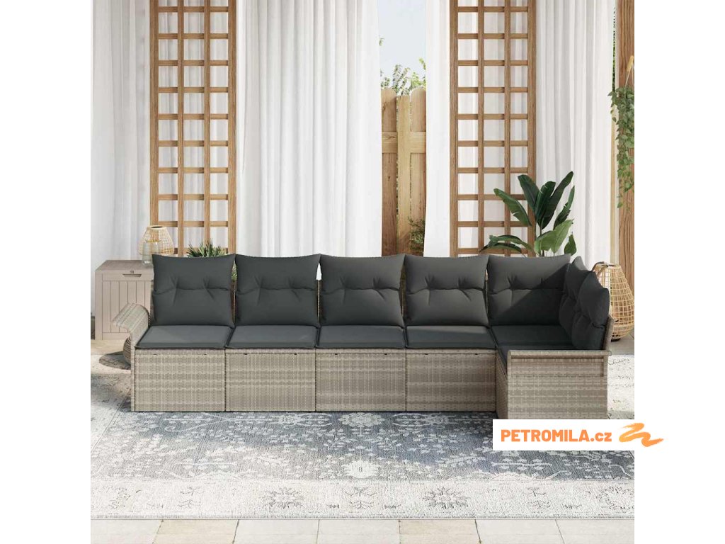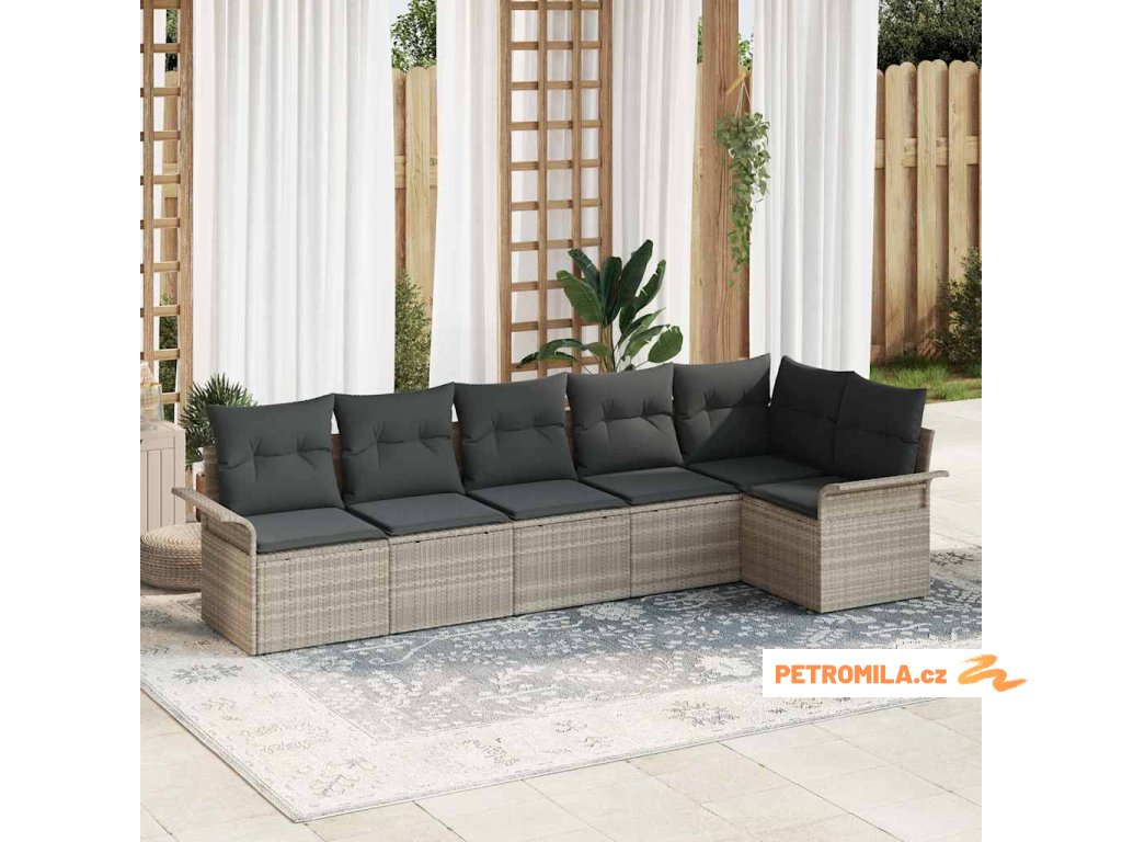 Sada zahradních pohovek s polštářem 6 pcs Světle šedá polyratan