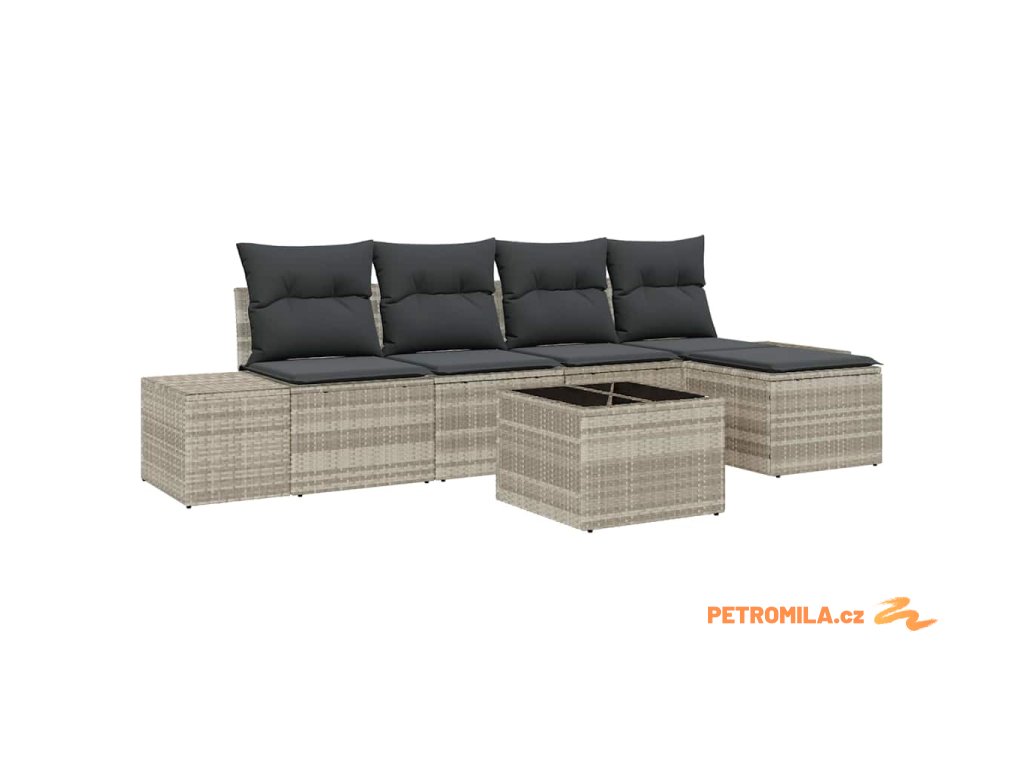 Sada zahradních pohovek s polštářem 6 pcs Světle šedá polyratan