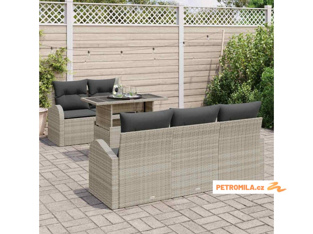Sada zahradních pohovek s polštářem 6 pcs Světle šedá polyratan