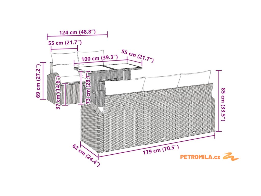 - Údržba a péče: Otírej povrchy vlhkým hadříkem, aby ses zbavil špíny, a v případě špatného počasí ukládej polštáře dovnitř, abys udržel jejich dobrou kondici. Používej potah, když se souprava nepoužívá, aby její životnost byla co nejdelší.