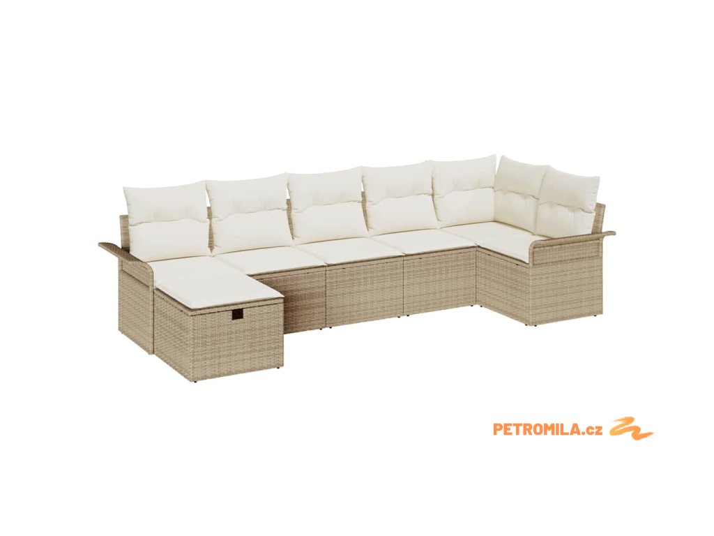 Sada zahradních pohovek s polštářem 7 pcs béžová a krémová