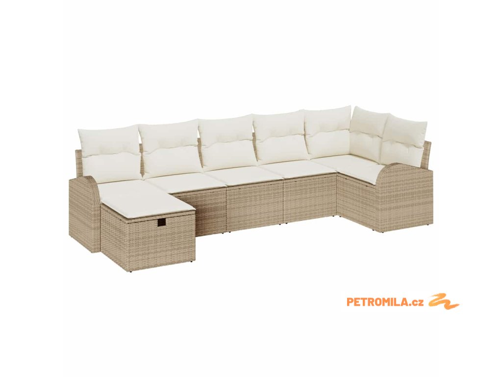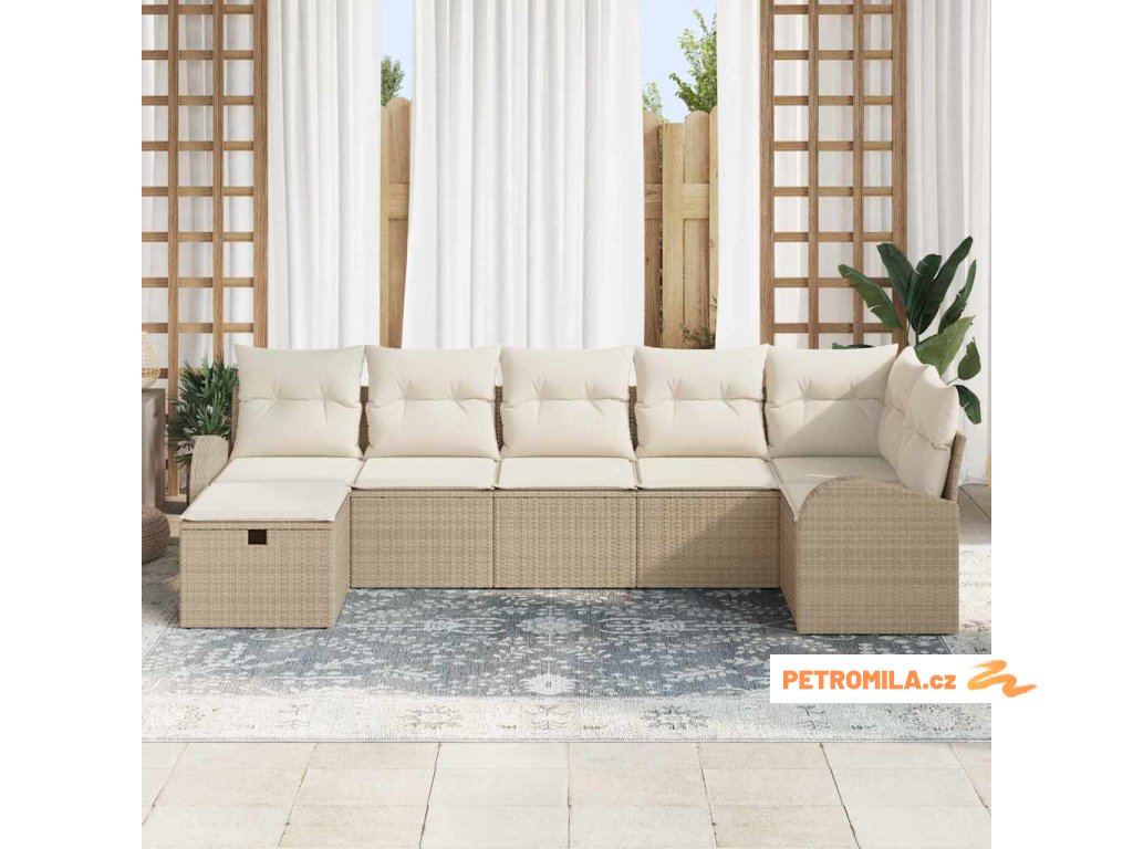 Sada zahradních pohovek s polštářem 7 pcs béžová a krémová