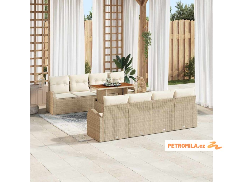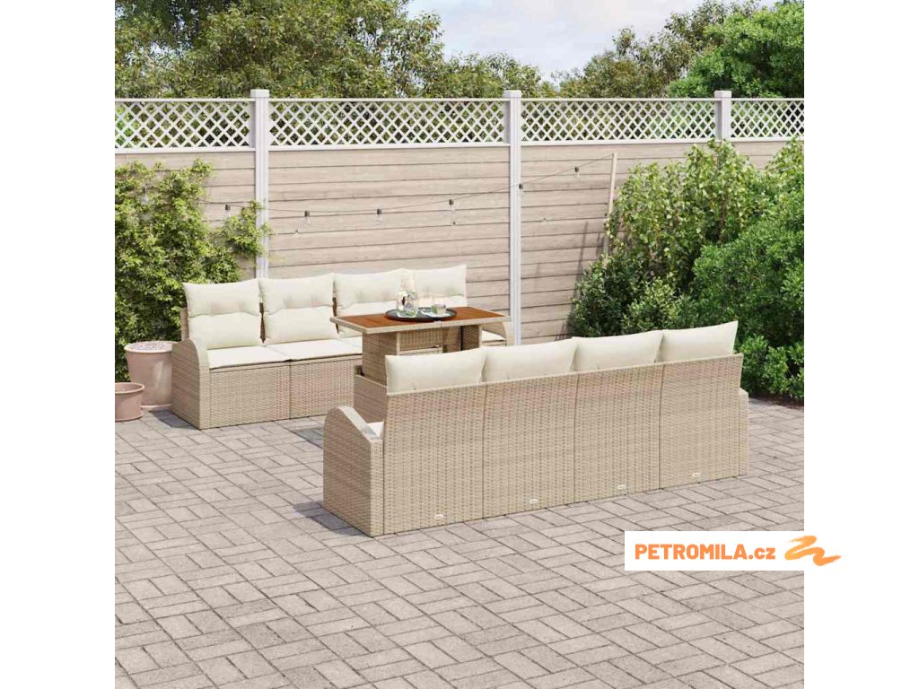 Sada zahradních pohovek s polštářem 7 pcs béžová a krémová