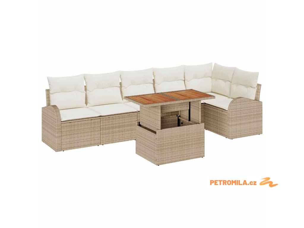 Sada zahradních pohovek s polštářem 7 pcs béžová a krémová