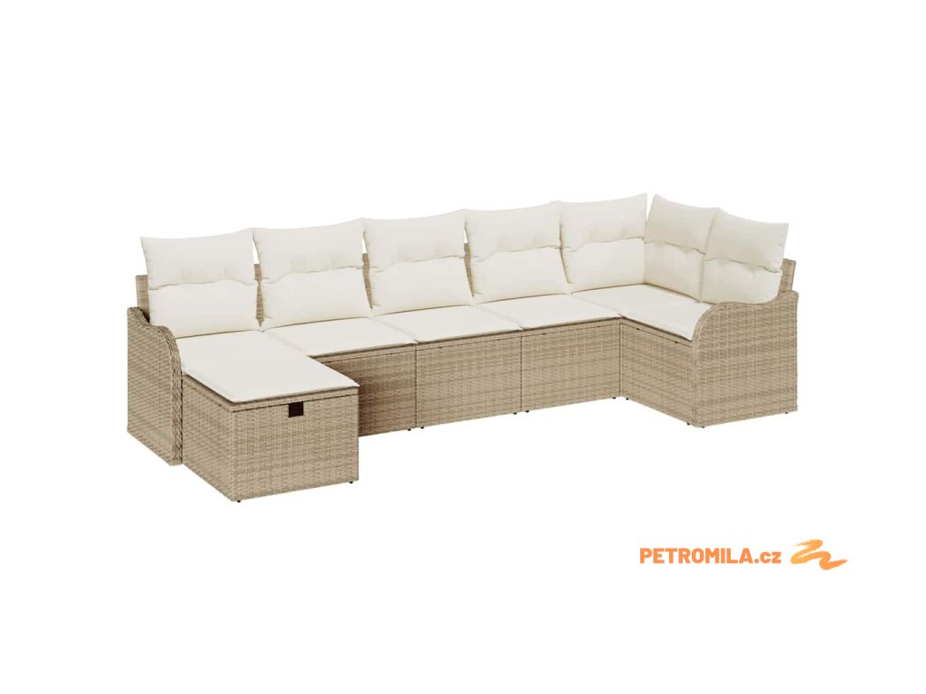 Sada zahradních pohovek s polštářem 7 pcs béžová a krémová