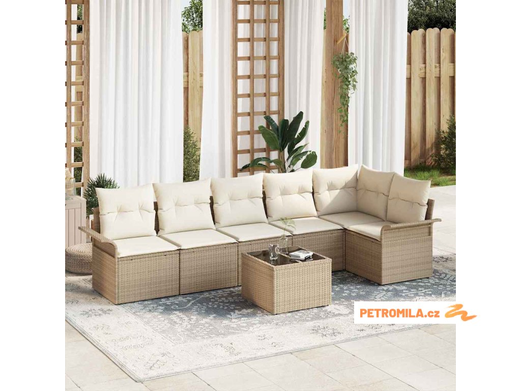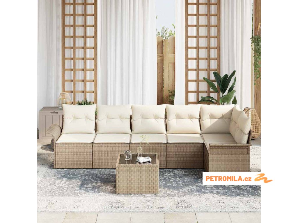 Sada zahradních pohovek s polštářem 7 pcs Béžová Poly ratan