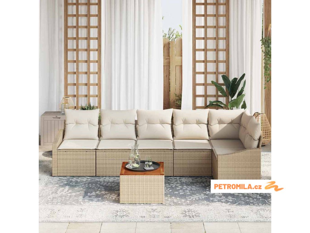 Sada zahradních pohovek s polštářem 7 pcs Béžová Poly ratan