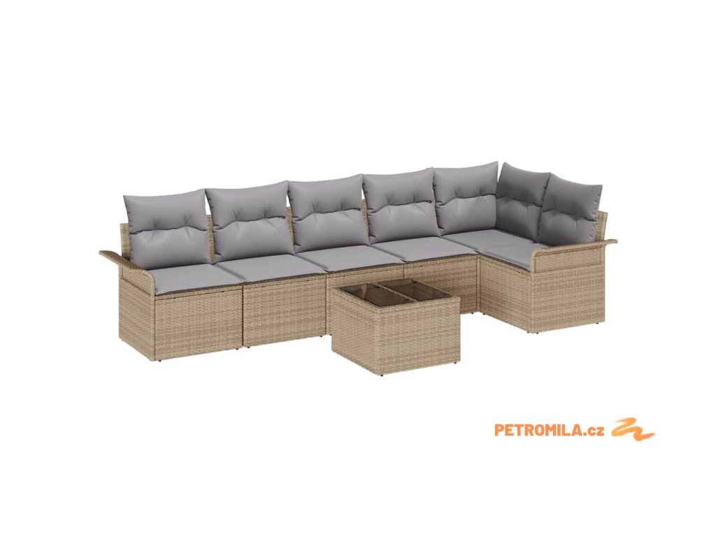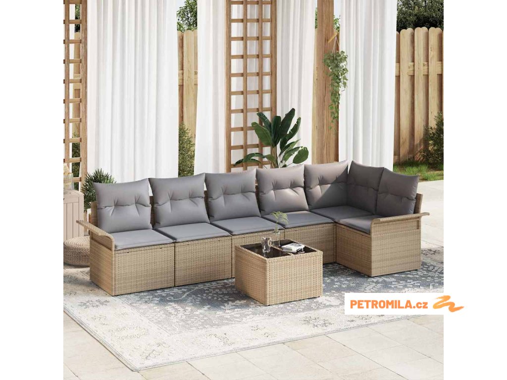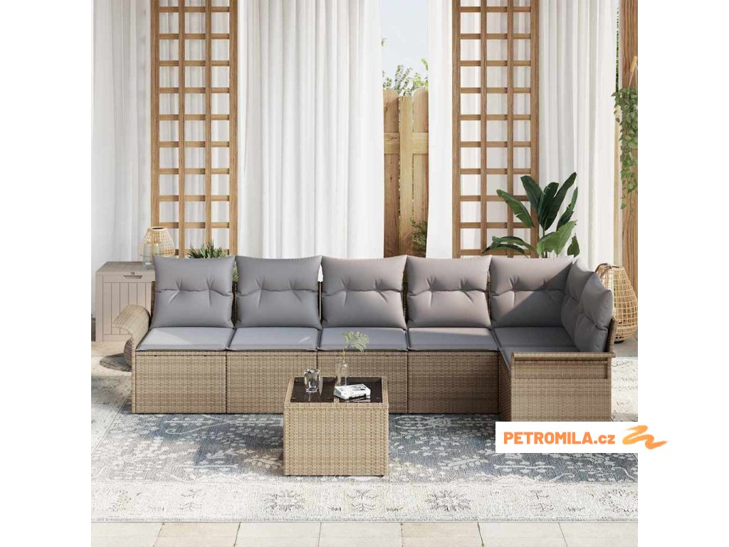 Sada zahradních pohovek s polštářem 7 pcs Béžová Poly ratan