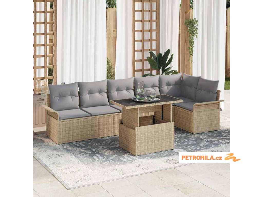 Sada zahradních pohovek s polštářem 7 pcs Béžová polyratan