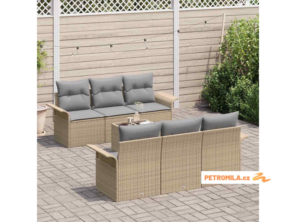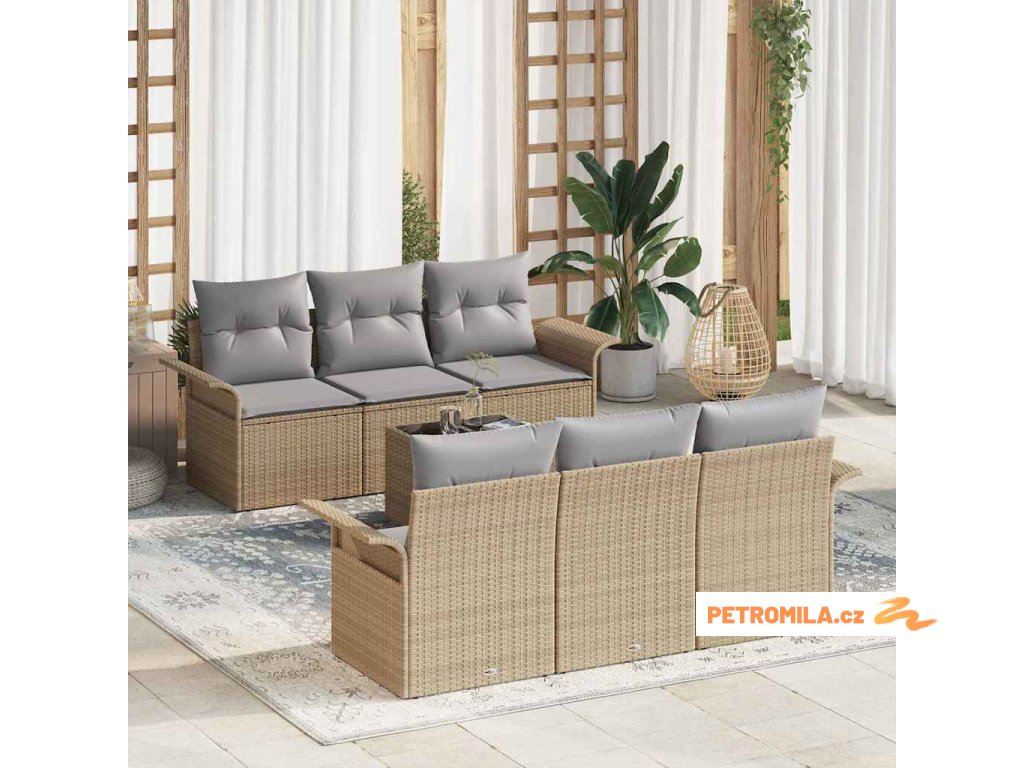 Sada zahradních pohovek s polštářem 7 pcs Béžová polyratan