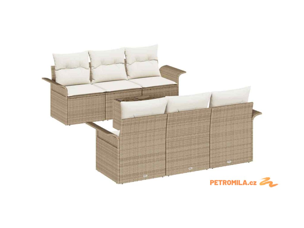 Sada zahradních pohovek s polštářem 7 pcs Béžová Poly ratan