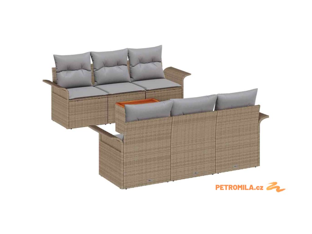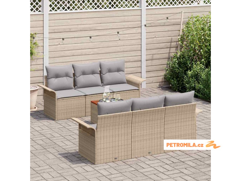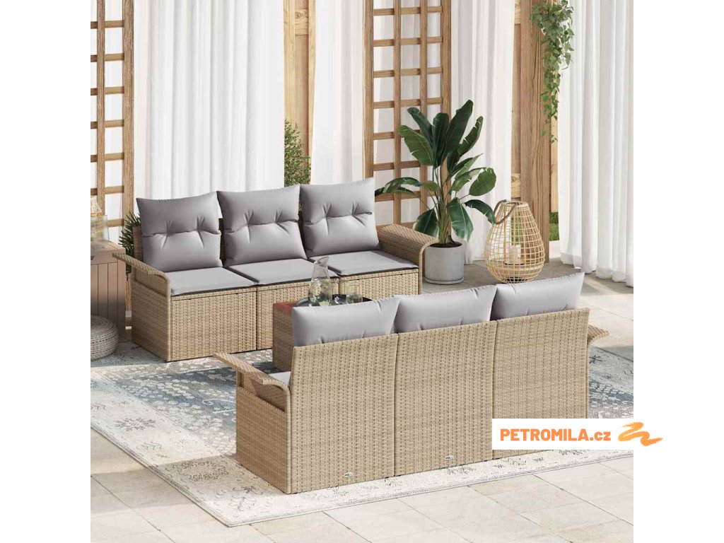 Sada zahradních pohovek s polštářem 7 pcs Béžová polyratan