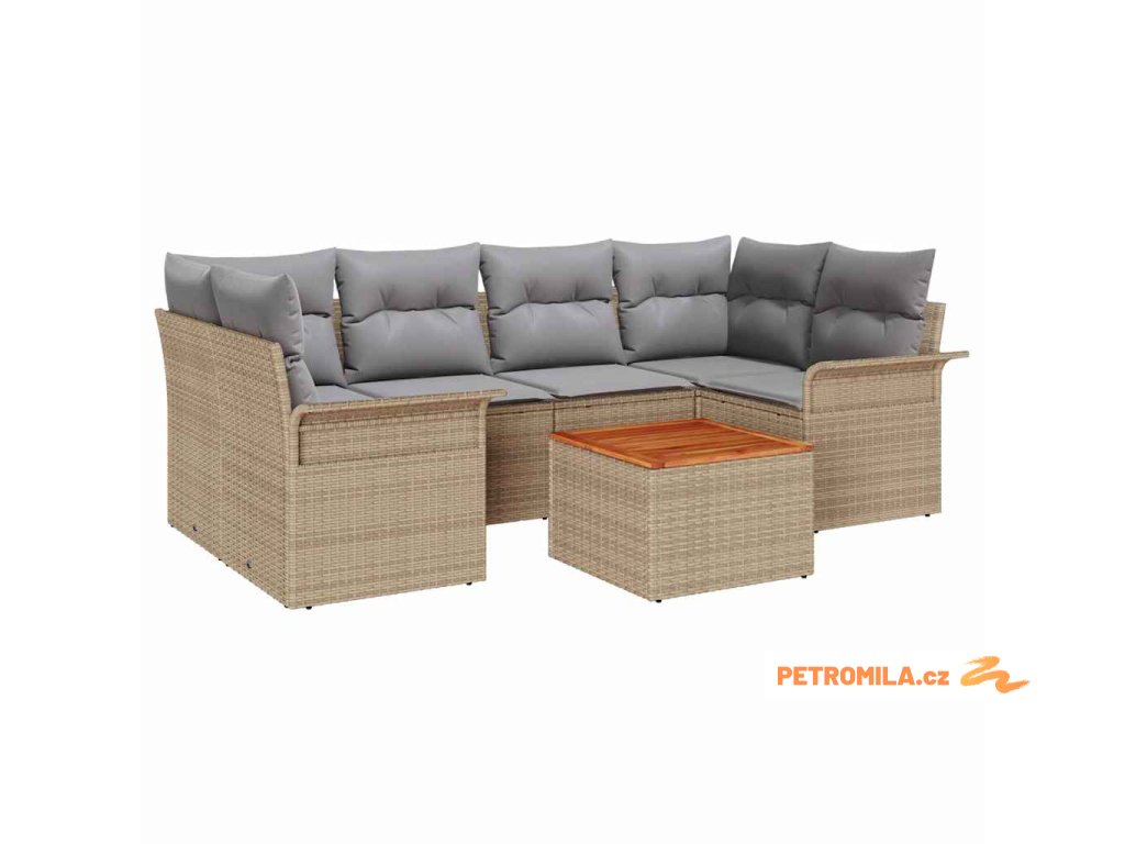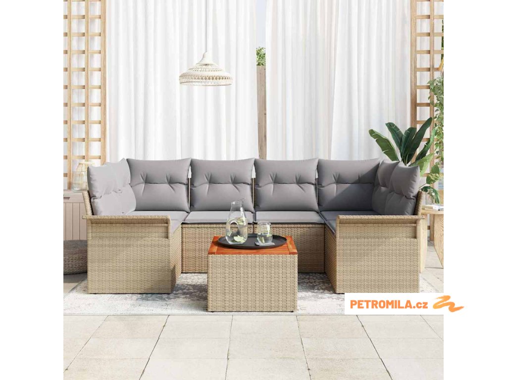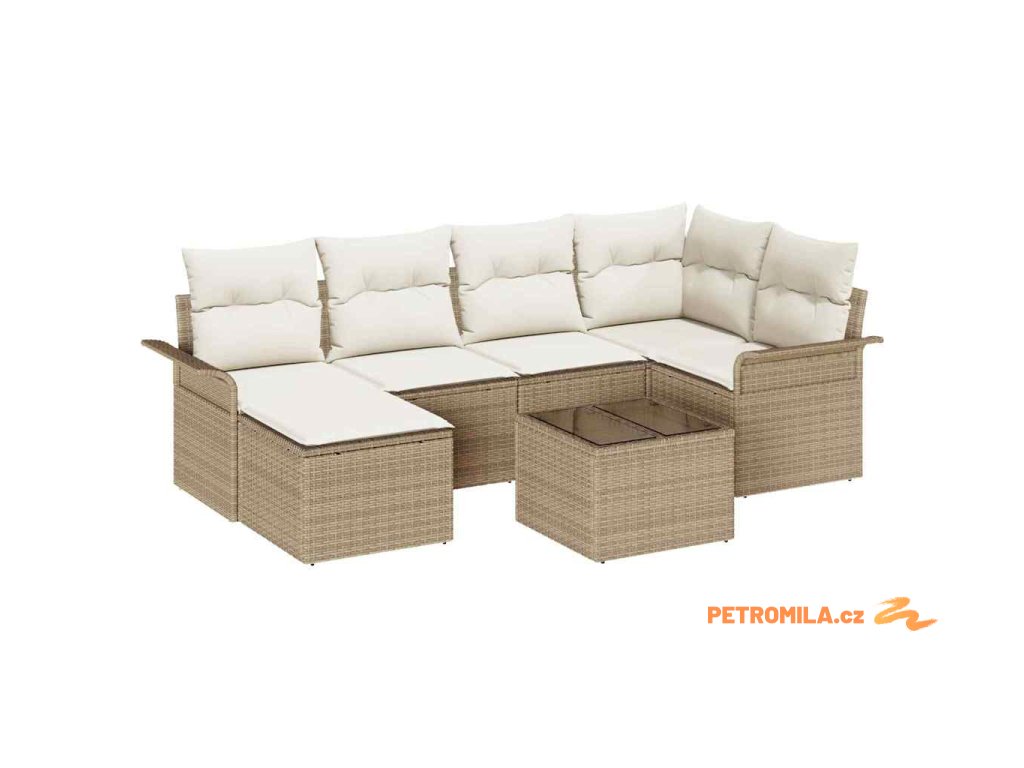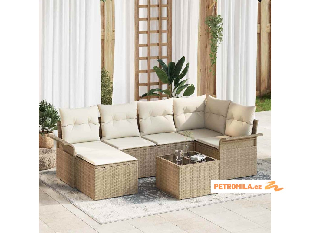 Sada zahradních pohovek s polštářem 7 pcs Béžová polyratan