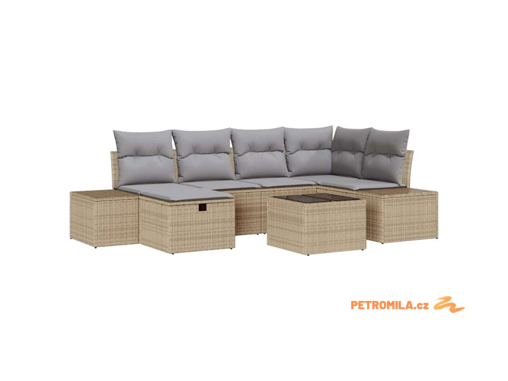 Sada zahradních pohovek s polštářem 8 pcs Béžová Poly ratan