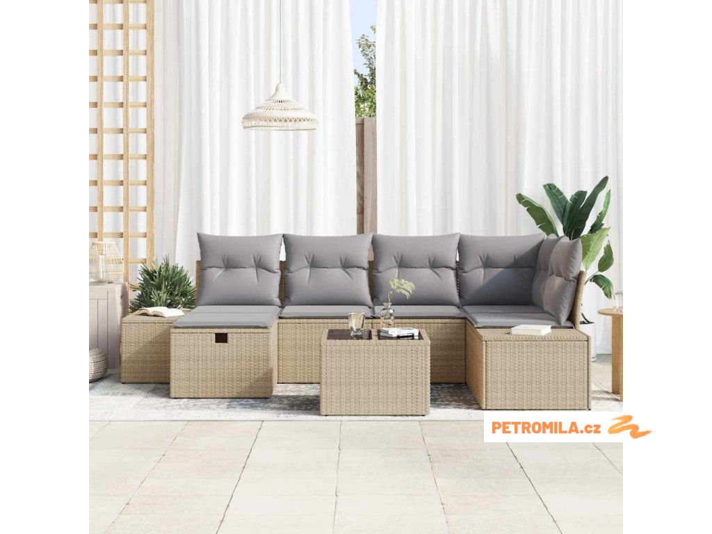 Sada zahradních pohovek s polštářem 7 pcs Béžová polyratan