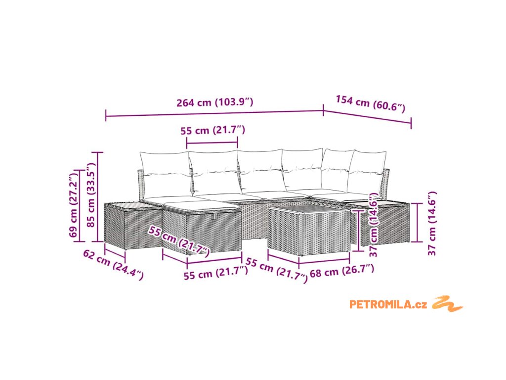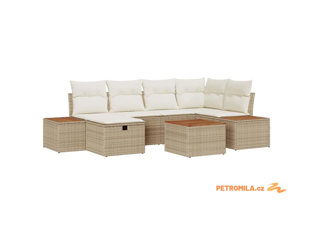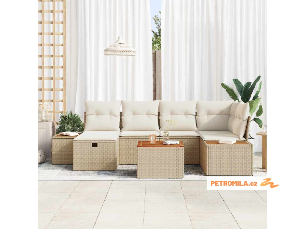 Sada zahradních pohovek s polštářem 7 pcs Béžová Poly ratan