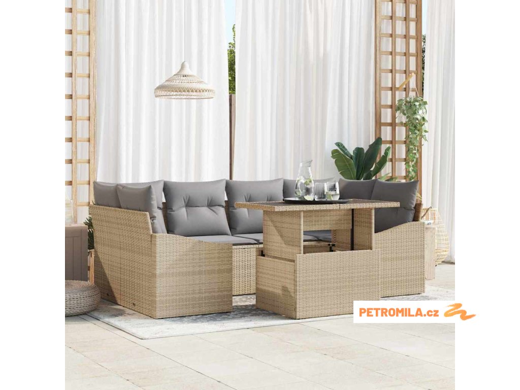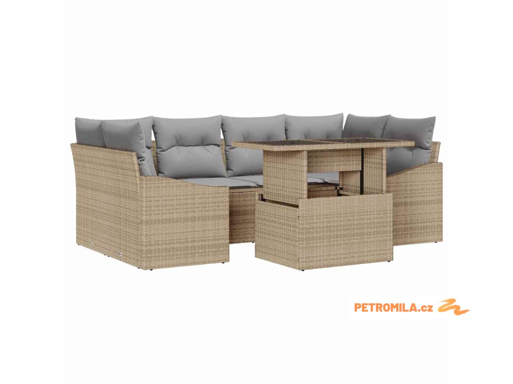 Sada zahradních pohovek s polštářem 7 pcs Béžová polyratan