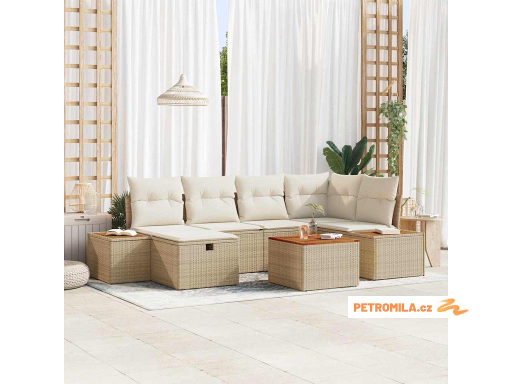 Sada zahradních pohovek s polštářem 7 pcs Béžová polyratan
