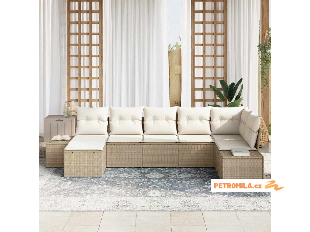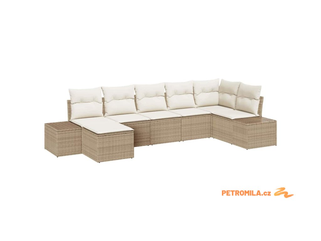 Sada zahradních pohovek s polštářem 7 pcs Béžová Poly ratan