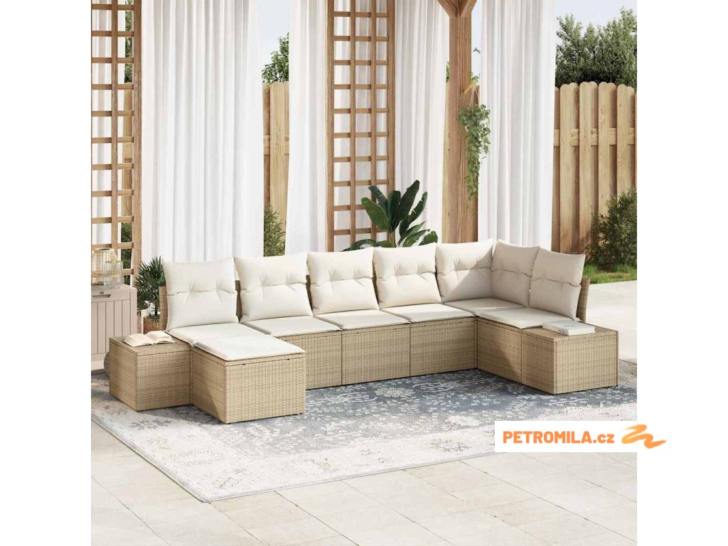 Sada zahradních pohovek s polštářem 8 pcs Béžová Poly ratan