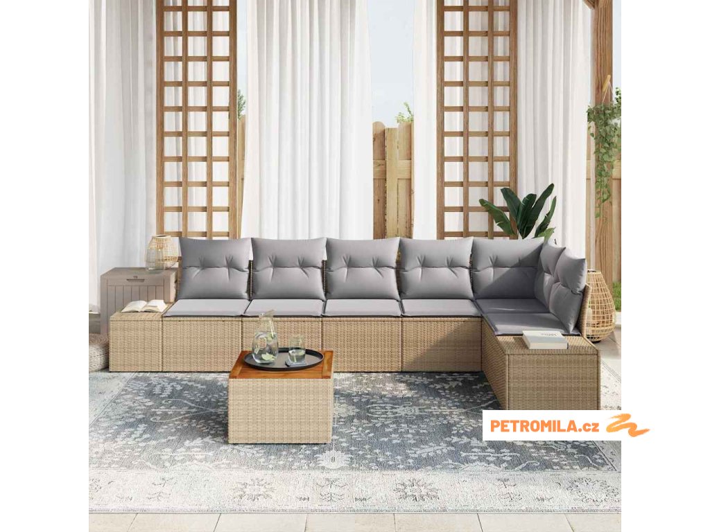 Sada zahradních pohovek s polštářem 7 pcs Béžová polyratan