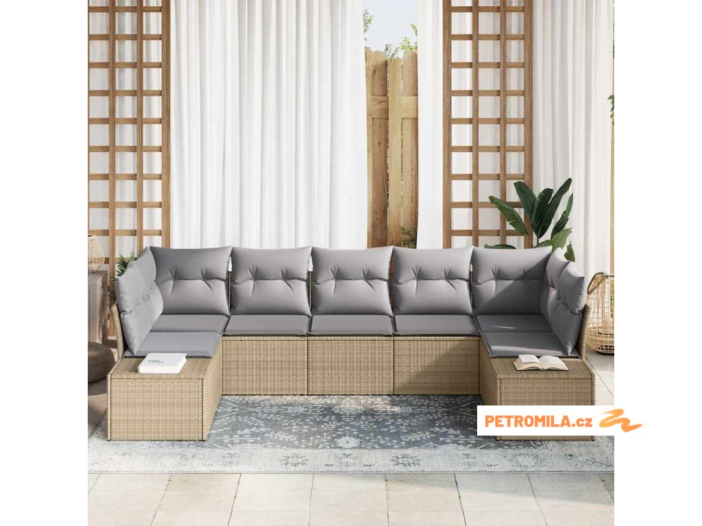 Sada zahradních pohovek s polštářem 7 pcs Béžová polyratan