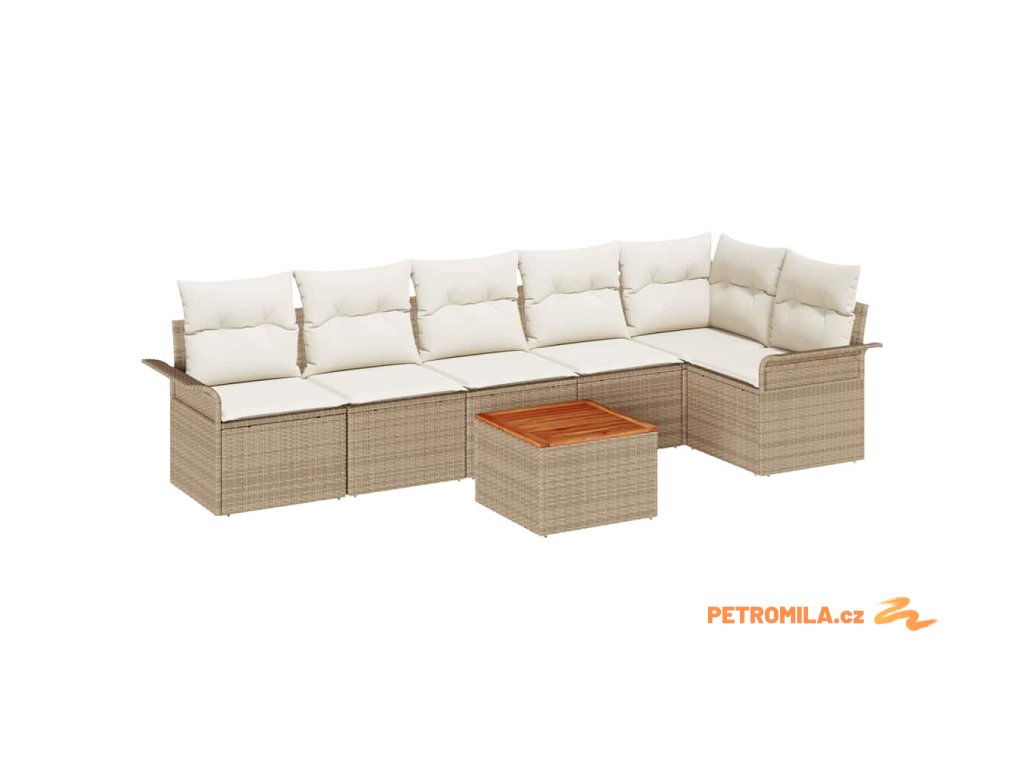 Sada zahradních pohovek s polštářem 7 pcs Béžová polyratan