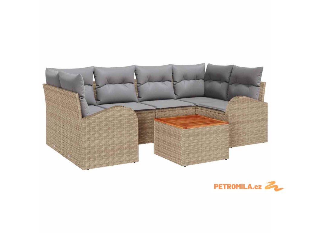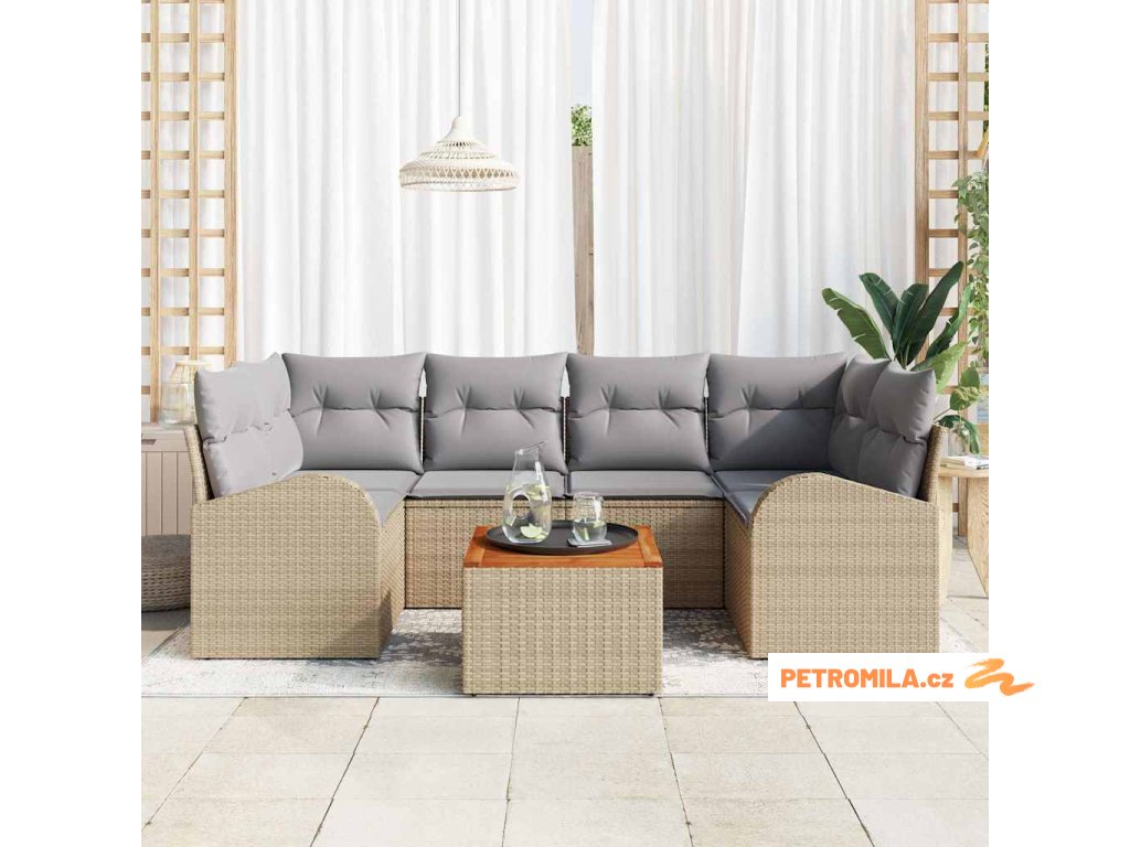 Sada zahradních pohovek s polštářem 7 pcs Béžová polyratan