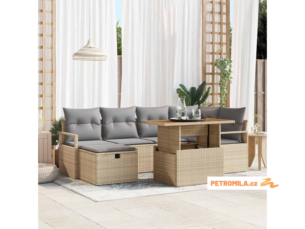 Sada zahradních pohovek s polštářem 7 pcs Béžová polyratan
