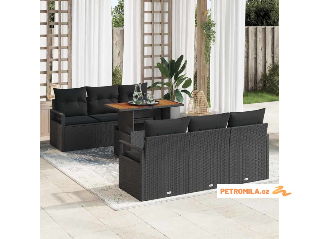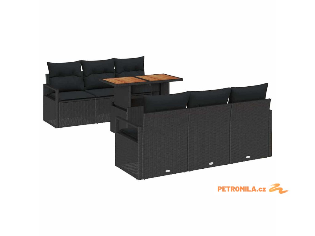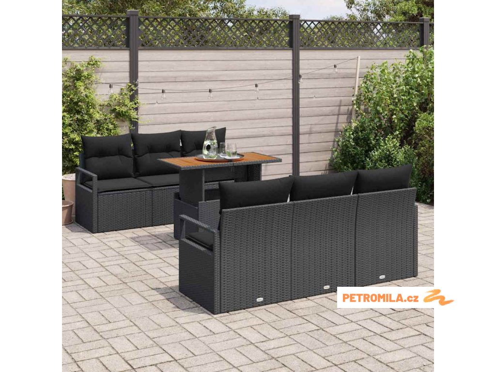 Sada zahradních pohovek s polštářem 7 pcs Černá