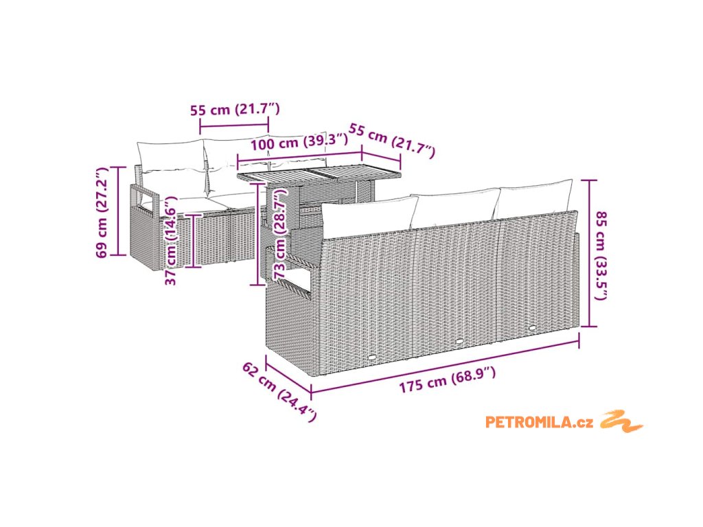 - Základní komponenty: Dodává se se čtyřmi pohovkami, z nichž každá má vestavěný úložný prostor, dvěma středovými sedačkami s dalším úložným prostorem a super praktickým zahradním stolem. Všechno je navrženo pro pohodlí a snadnost, ideálně pasuje k vašemu životnímu stylu a drží jednotný styl a praktickou oporu.
