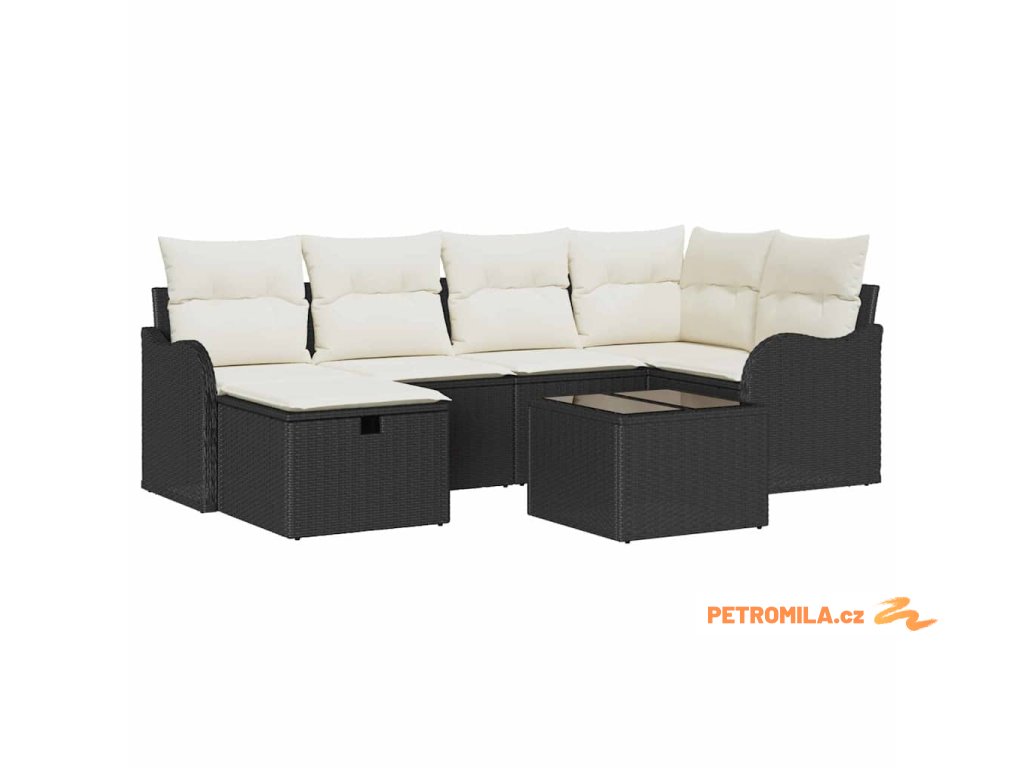 Sada zahradních pohovek s polštářem 7 pcs Černá a krémová