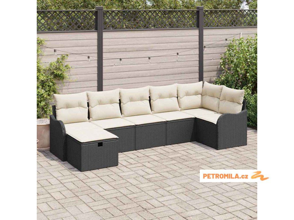 Sada zahradních pohovek s polštářem 7 pcs Černá a krémová
