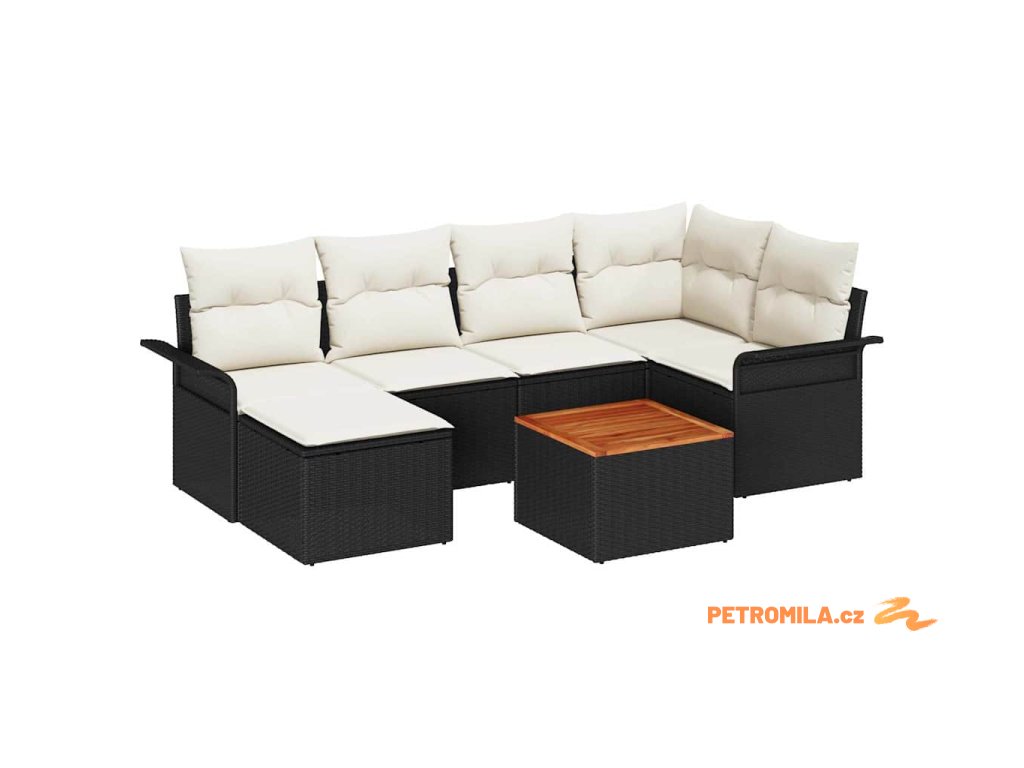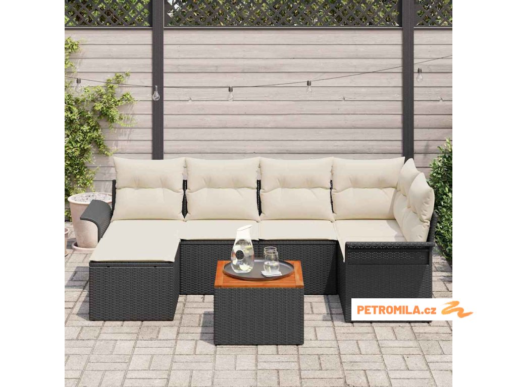 Sada zahradních pohovek s polštářem 7 pcs Černá a krémová