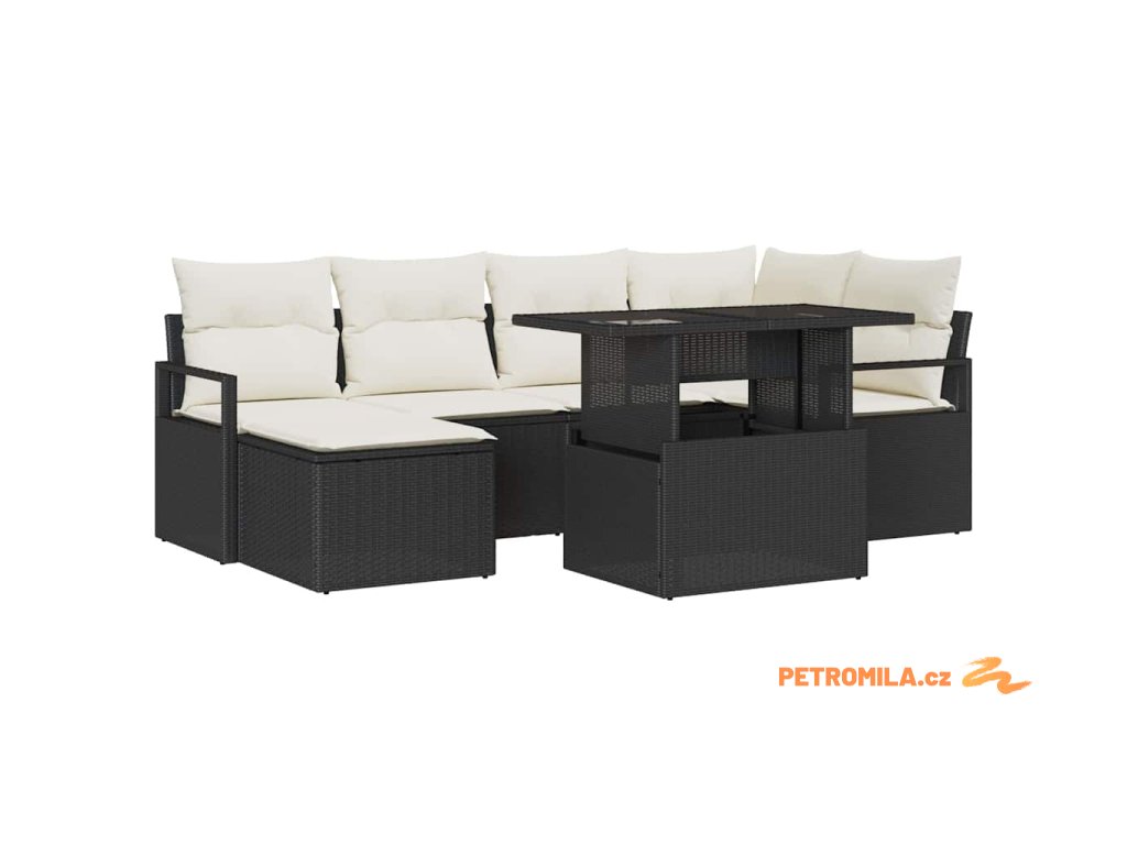 Sada zahradních pohovek s polštářem 7 pcs Černá a krémová