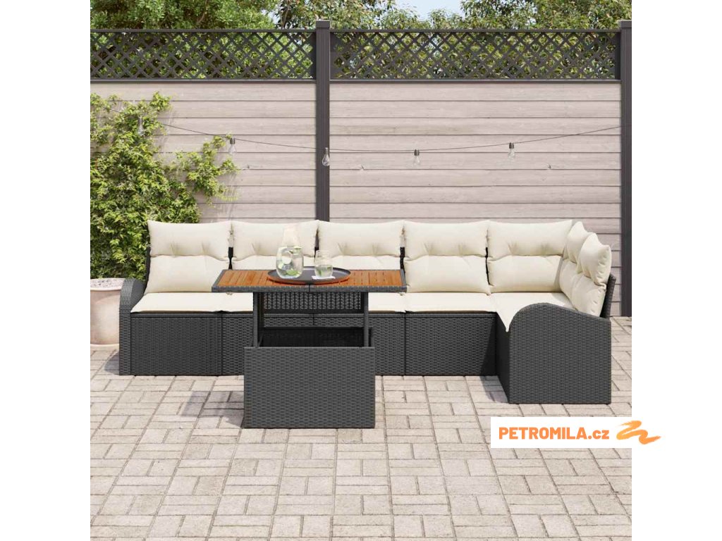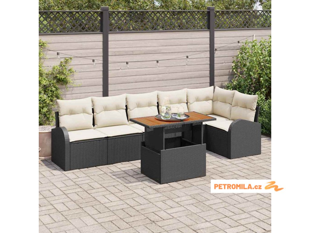 Sada zahradních pohovek s polštářem 7 pcs Černá a krémová