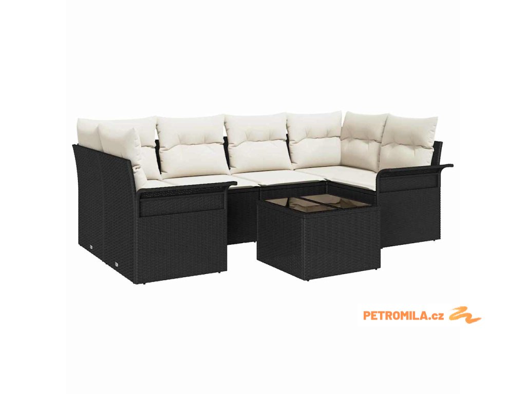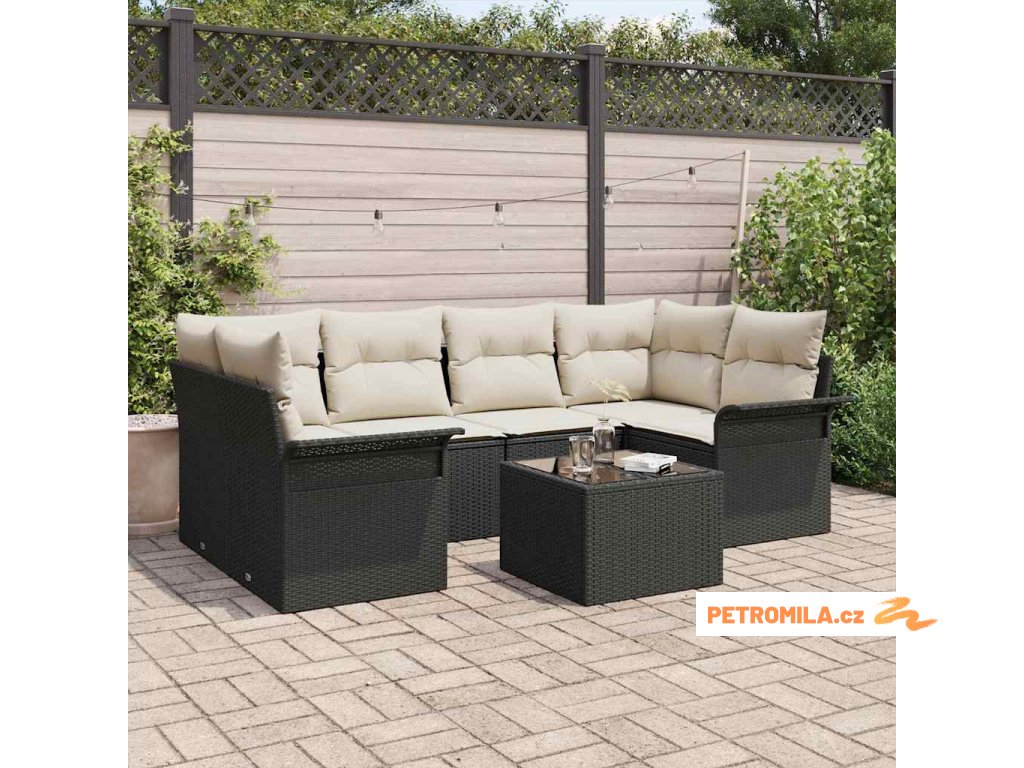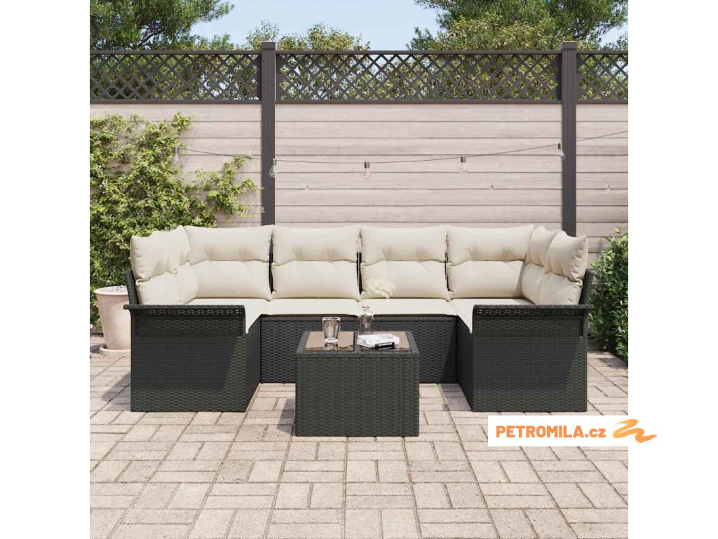 Sada zahradních pohovek s polštářem 7 pcs Černá a krémová